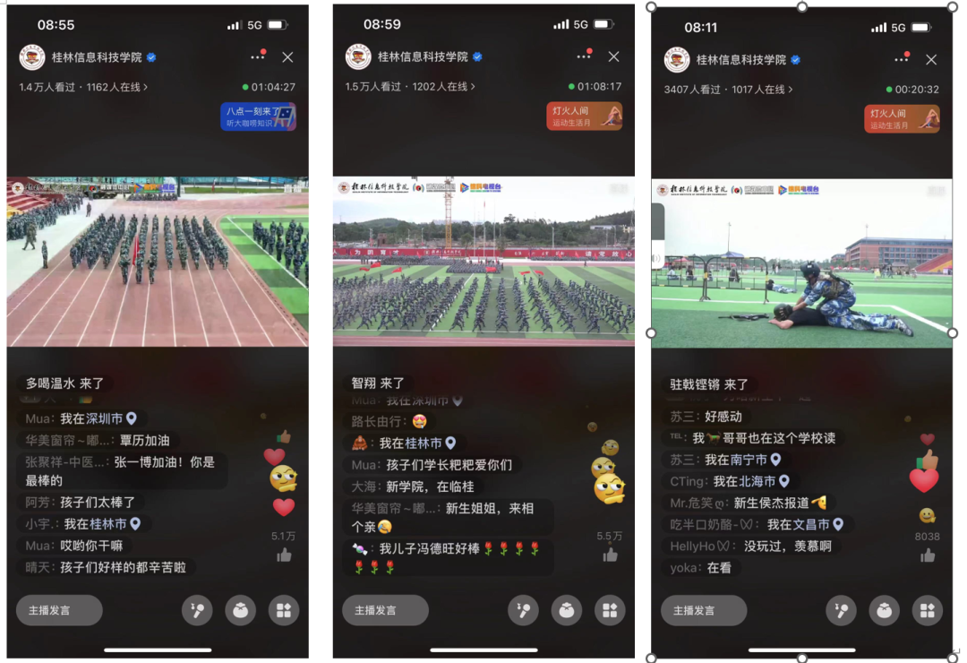 据悉,本次军训安排了共同条例教育与分类队列训练、实弹射击与战术训练、防卫技能与战时防护训练、战备基础与应用等4类12项内容。学校通过全媒体技术对此次军训汇演进行了全程直播,据统计,此次汇演大会学校官方微信视频号3.8万人/次观看直播、抖音号3.7万人/次观看直播、Bilibili号2.6万人/次观看直播,近10万师生、校友和社会各界人士通过线上一同收看了此次大会,共收获点赞20余万次。