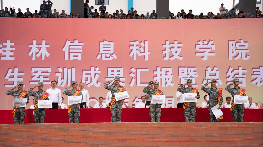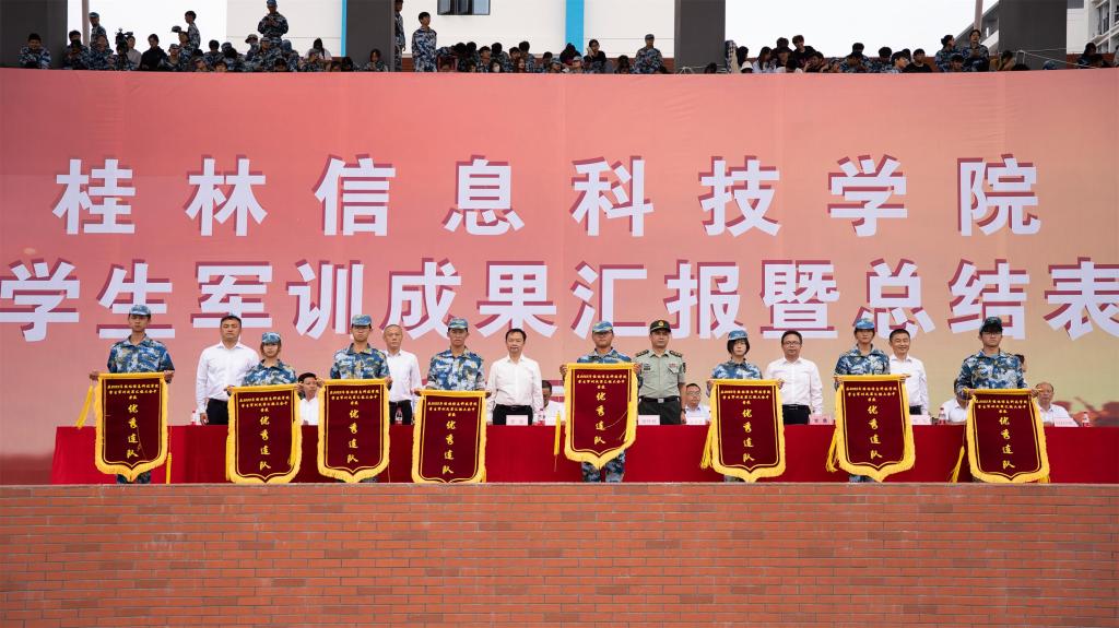 桂林警备区战备建设处参谋谢钟权中校检阅了beat365本次军训的成果并发表振奋人心的讲话。他指出,军训是青年大学生接受国防教育的基本形式,同学们以饱满的精神状态完成这次军训汇演感到非常振奋,充分展现了信科学子朝气蓬勃、奋发向上的精神风貌,也以实际行动展示了当代大学生的责任担当和团队协作。为把来自不易的军训成果运用到今后的学习生活中,谢钟全中校希望同学们做到“三个融入”。一是把勇争第一,吃苦耐劳的精神融入学习生活;二是把热爱集体,崇尚荣誉的观念融入学习生活;三是把服从命令,听从智慧,遵章守纪的思想融入学习生活。谢钟权强调,青年人是祖国的未来和希望,肩负着振兴中华的神圣使命;希望同学们继续发扬在军训中焕发出的好精神、好作风,主动担起社会主义建设者和接班人的责任,把军训成果转化为优良学风、优良作风,转化为爱国之心、报国之志。