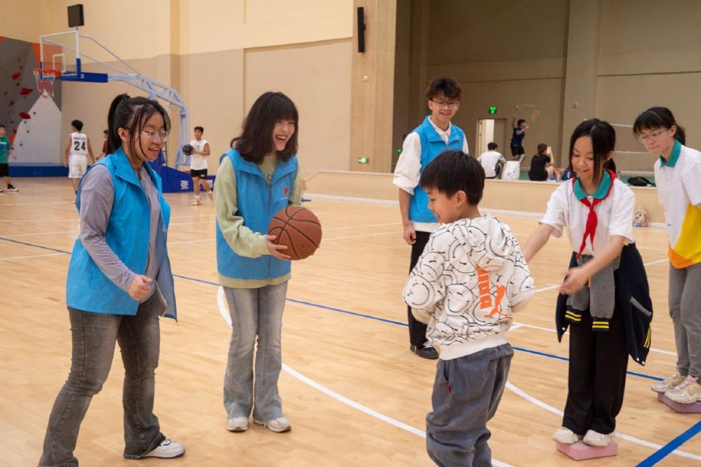 活动中,信息工程学院团委书记魏江帆表示,此次素质拓展旨在厚植家国情怀、涵养进取品格,希望各位同学增进交流、强基固本。随后,志愿者们组织了一系列丰富多彩的游戏,如小松鼠找大树、独木桥等,让复兴小学的小朋友在轻松愉快的氛围中学会团结合作,帮助他们释放压力,培养良好的心理素质。