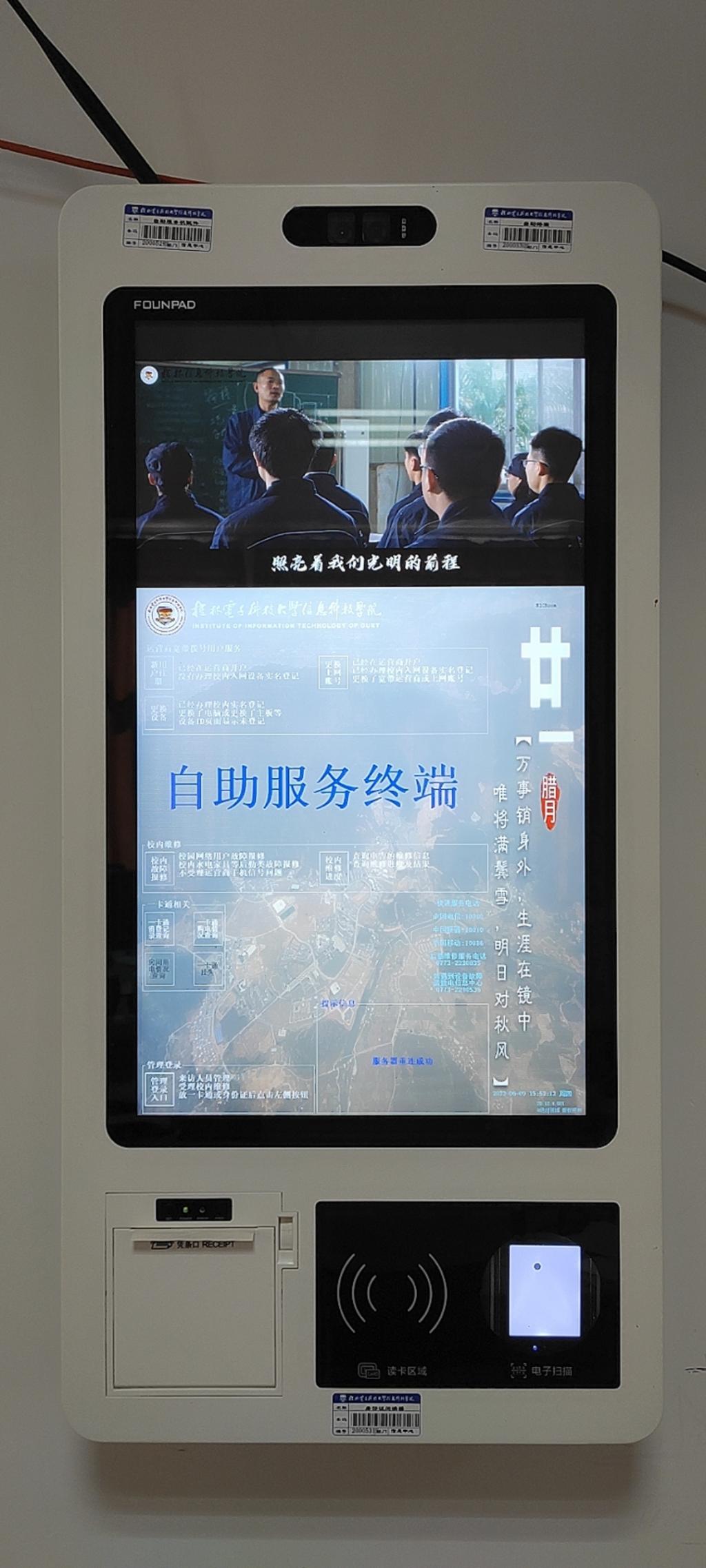 为方便同学们的日常生活,beat365在各学生宿舍门口均设有自助服务终端机器,该自助服务终端提供了方便快捷的无纸化服务,如同学们在宿舍生活时出现网络故障及宿舍水电故障等,可凭校园一卡通等证件在终端进行自助服务并查看后续处理情况。