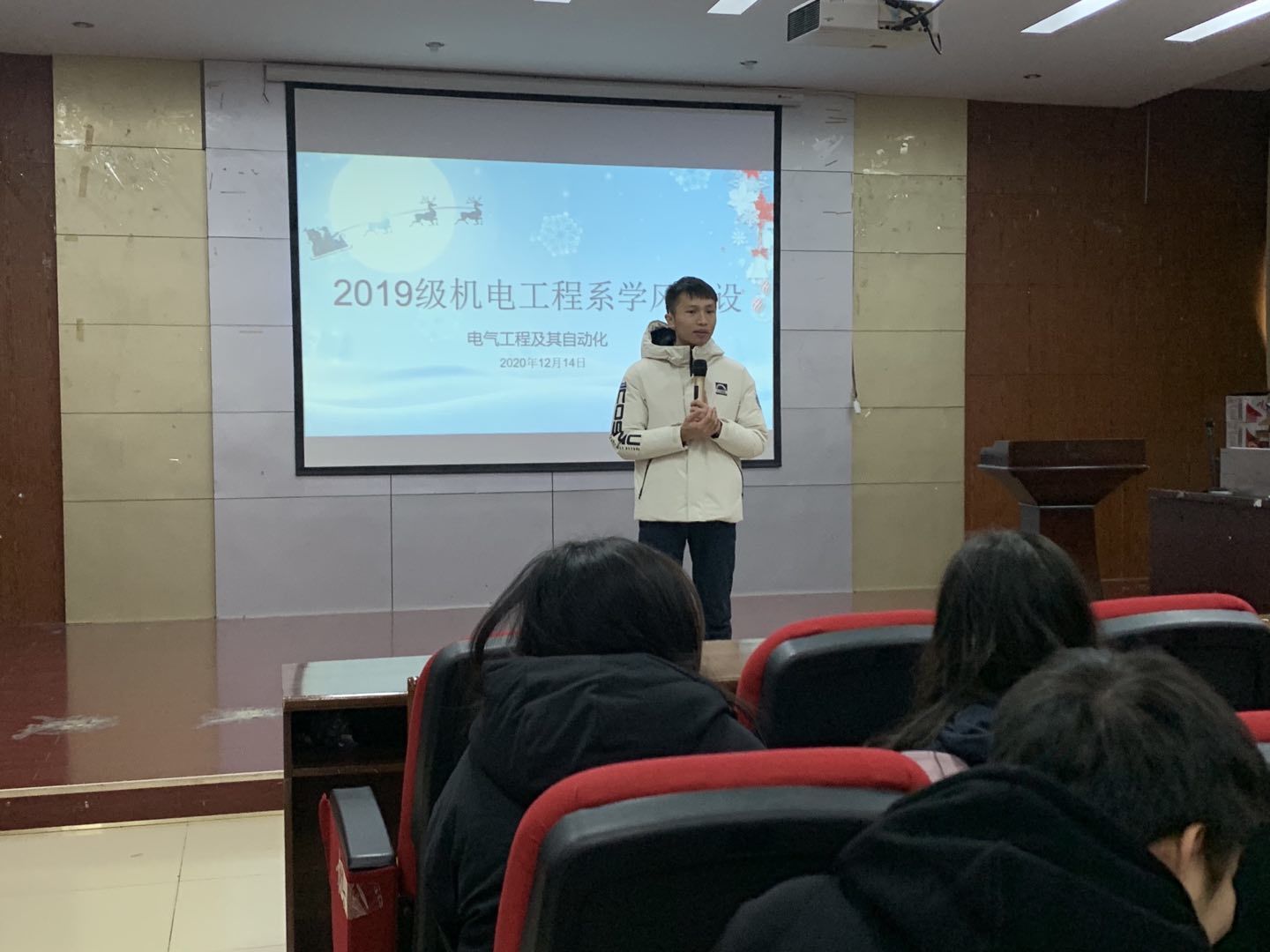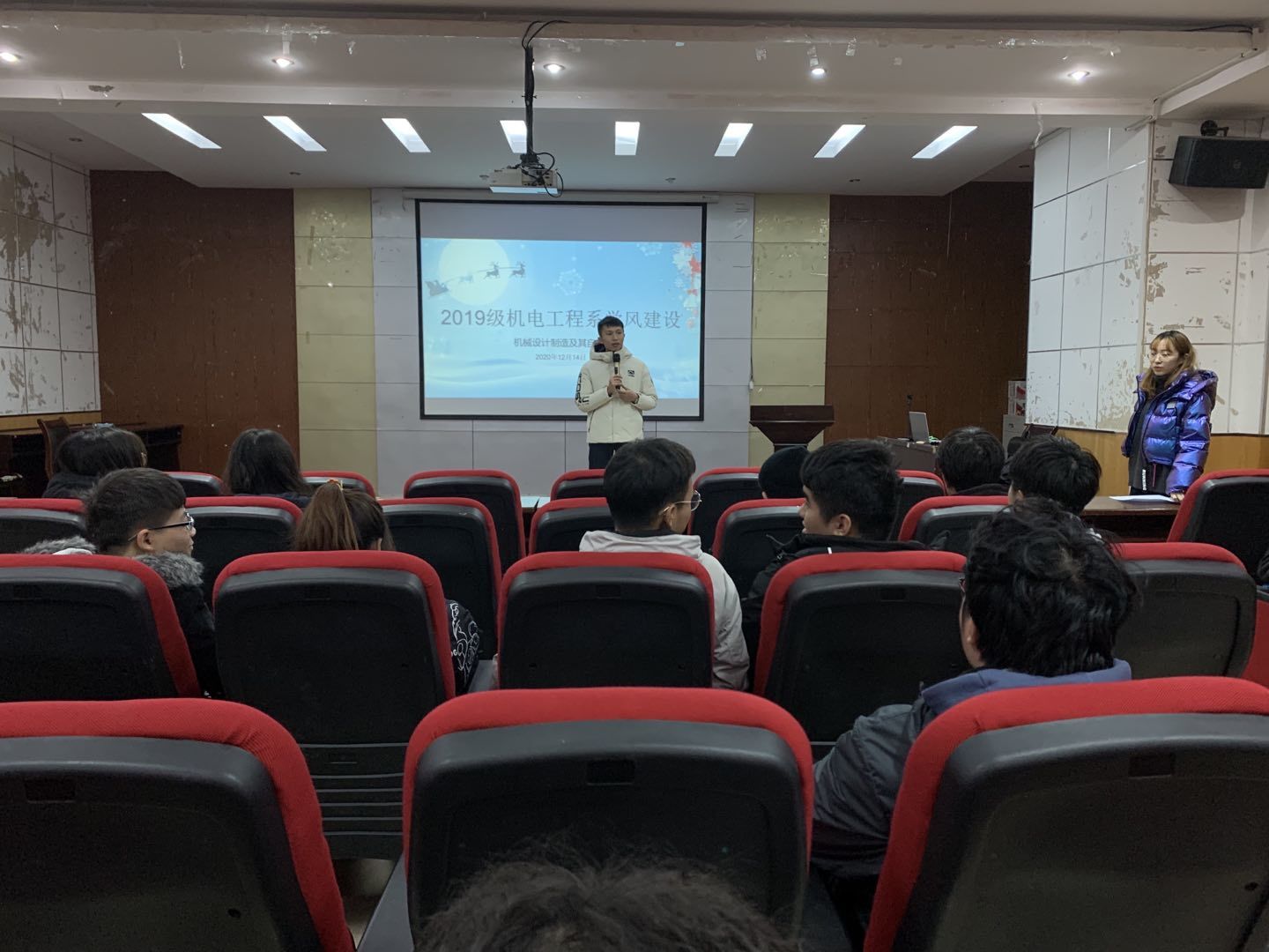 为增强我系2019级学生专业学风建设,提升专业归属感,12月14日在21201报告厅,我系辅导员胡平华、王书蕊面向2019级机电工程系各班学委,年级委组织召开了“学风优化,科技竞争,诚信考试”的主题班会。