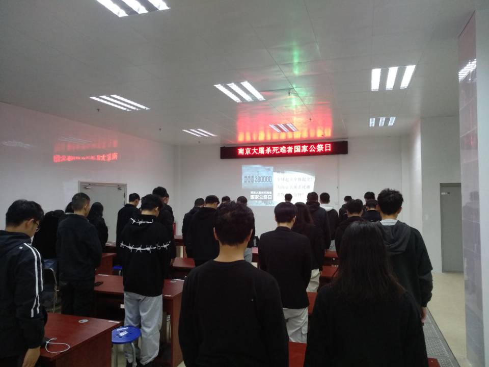 为纪念南京大屠杀死难者,机电工程系于12月13日国家公祭日在管委会会议室开展2019、2020级学生干部“勿忘国耻,铭记于心”主题教育活动,系党总支书记黄娟、全体辅导员参加,活动由辅导员李阳阳主持。