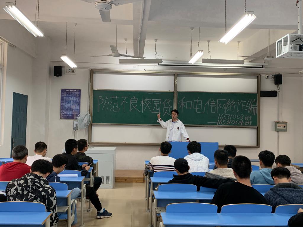 为提高学生的自我防范意识和能力,16531003 、16531004 班于 2019 年11 月 16 日在 31106 教室开展“防范不良校园贷和电信网络诈骗”主题班会。