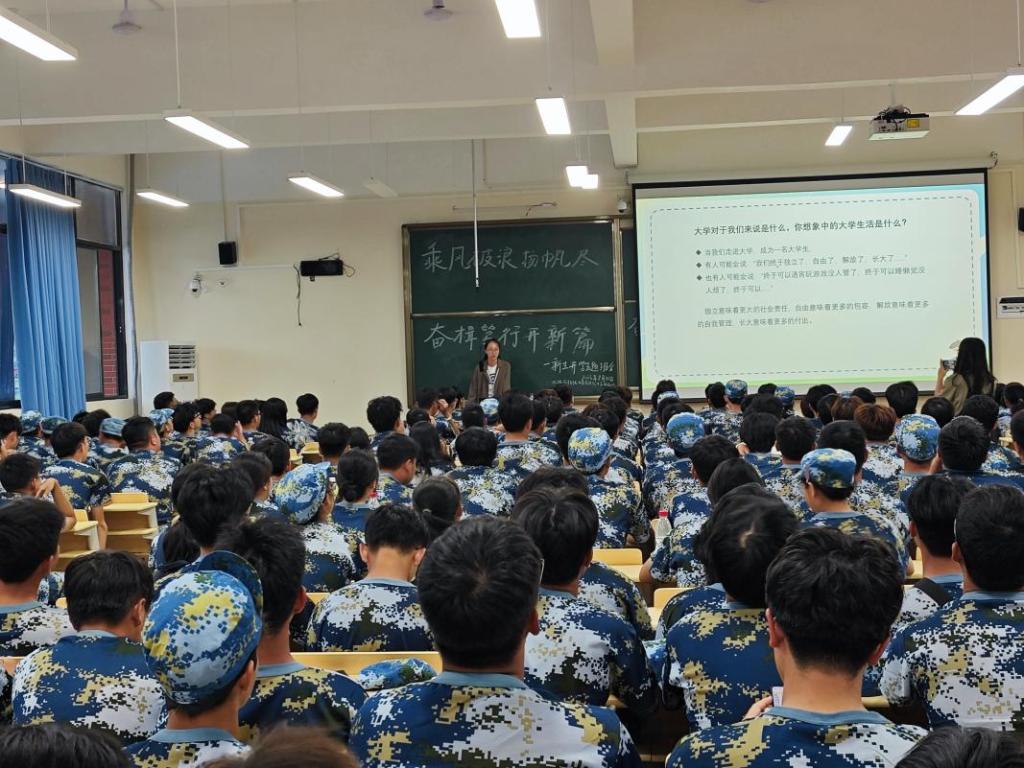 8月31日,机电工程学院在D107开展“乘风破浪扬帆尽,奋楫笃行开新篇”主题班会,班会由新生辅导员主讲,全体2023级新生参加。