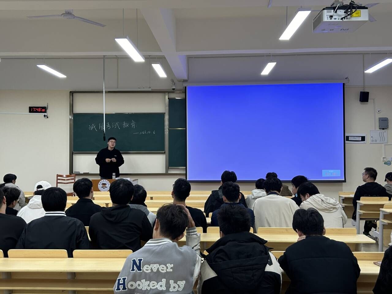 会上,葛天老师首先强调了诚信考试的重要性和意义。他指出,诚信考试不仅是对自己学习成果的真实展示,更是对社会价值观的坚守和对学术道德的尊重。他呼吁同学们要始终坚持诚实守信的原则,摒弃任何作弊行为,树立起良好的学术操守。作弊不仅破坏了公平竞争的环境,损害了自己的学习成果,更严重地侵蚀了社会的信任和道德底线。他强调,作弊不仅违反了学校的考试纪律,也违背了个人的职业道德和人格尊严。最后,他鼓励同学们通过自觉学习、课堂互动、积极备考等方式,提高自己的学习能力和水平,从根本上杜绝作弊行为的发生。他还提醒同学们要遵守考场规则,严守考试纪律,做到心中有数、行动合规。