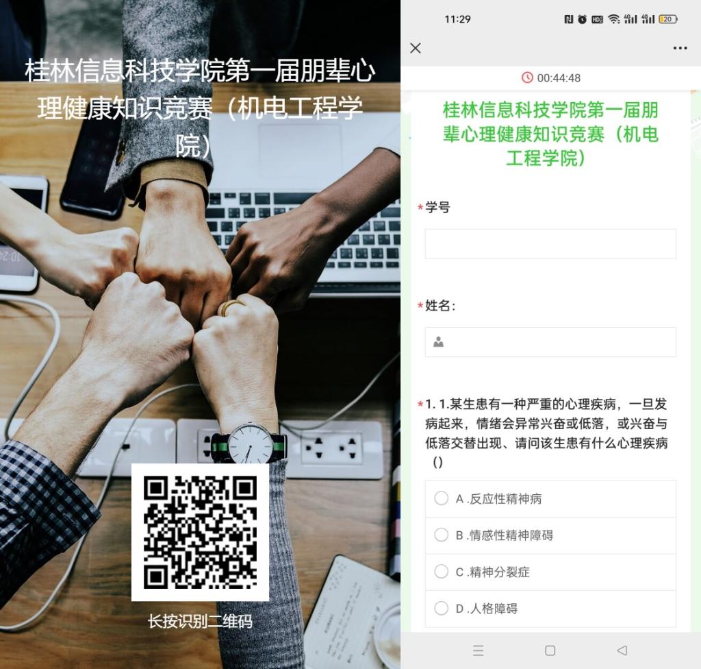 为提高大学生的心理健康水平、构建和谐的校园环境,10月20日-11月6日期间,机电工程学院使用问卷星平台进行第一届朋辈心理健康知识竞赛院内初赛,本次活动面向学院2021级-2023级学生。