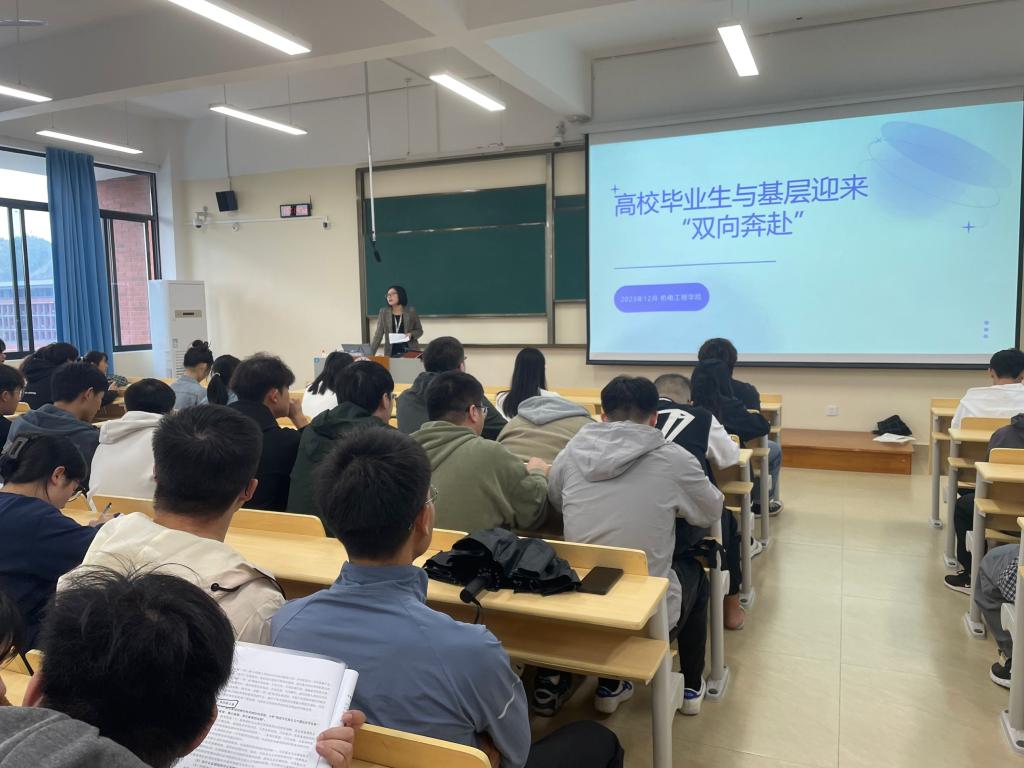 12月11日,机电工程学院在D408教室召开2024届毕业生基层就业政策解读会,会议由2020级辅导员严继玲老师主持,全体2024届毕业生参加了会议。
