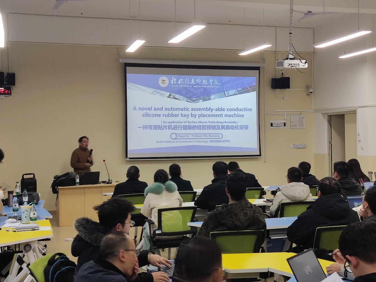 为助力新入职教师尽快适应高校教学工作岗位需要,切实增强立德树人使命感荣誉感,提升高校新入职教师教学能力和业务水平,更好地履行高校教师岗位职责,机电工程学院积极开展新教师系列培训讲座。12月12日下午两点半,在明志楼C103教室举行了本周的培训活动,本次培训主题为“一种可用贴片机进行组装的硅胶按键及其自动化安装”,由马孝松教授主讲,刘朝福副院长主持,吸引了全体新入职专任教师参与。