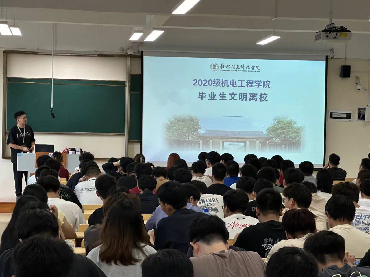 为维护高校安全稳定和教学生活秩序、创建文明安全的校园环境,确保毕业生安全、文明、有序离校,6月7日,机电工程学院开展2024届毕业生文明离校主题活动,由毕业班辅导员主持,全体毕业生参加。