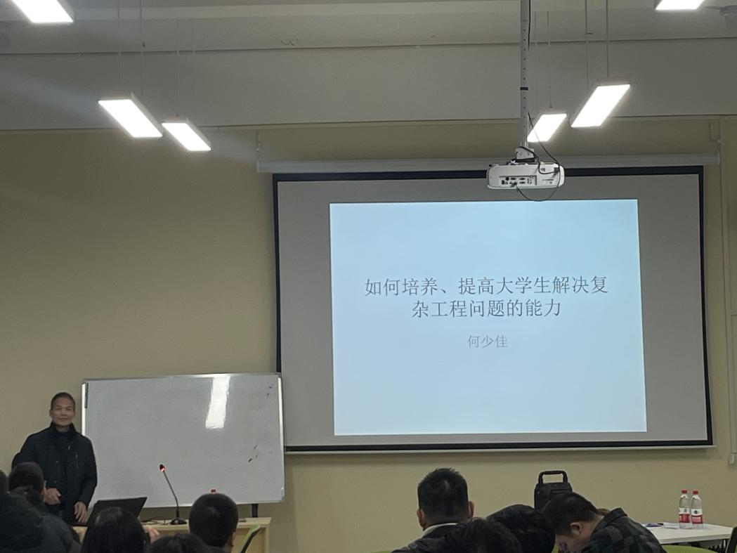 1月9日下午,机电工程学院在C103教室成功举办了一场针对新入职教师的专业培训讲座。本次讲座的主题为“如何培养、提高大学生解决复杂工程问题的能力”,由何少佳研究员主讲,文超书记担任主持人。