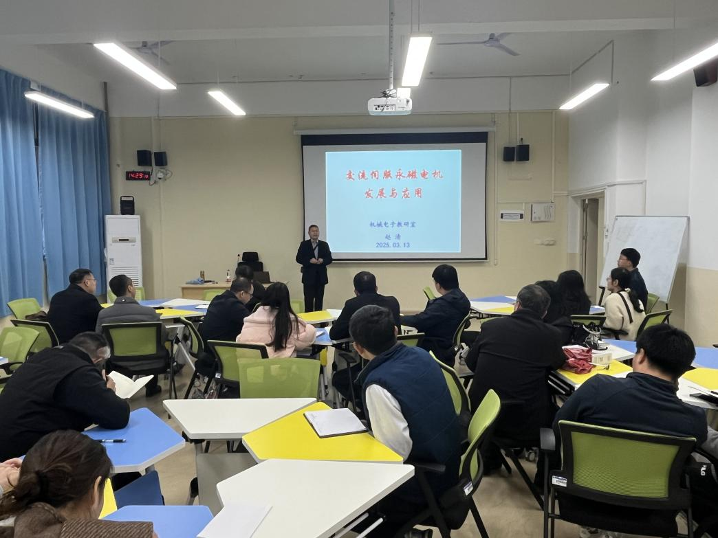 为了提升新入职教师的教学能力和业务水平,帮助他们更好地履行高校教师岗位职责,3月13日下午,机电工程学院在明志楼C101教室成功举办了一场题为“交流伺服永磁电机的发展与应用”的专题培训,赵清教授担任主讲人。赵教授是电机领域的知名专家,拥有丰富的科研和教学经验。培训吸引了学院新入职专任教师参加。