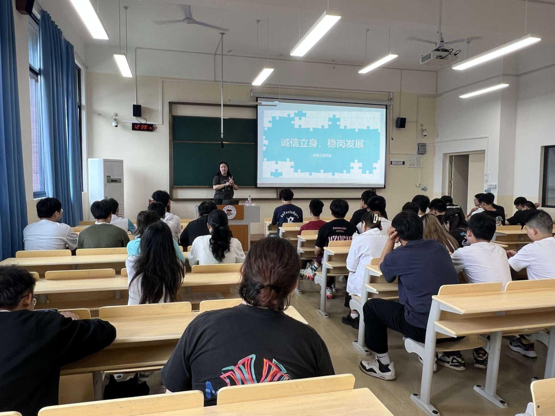 为维护毕业生与用人单位合法权益,构建和谐有序的就业市场环境,5月22日至23日,机电工程学院面向2025届毕业生,成功举办以“诚信立身,稳岗发展”为主题的就业诚信教育主题活动,活动由年级主任陈筱婕老师主持。