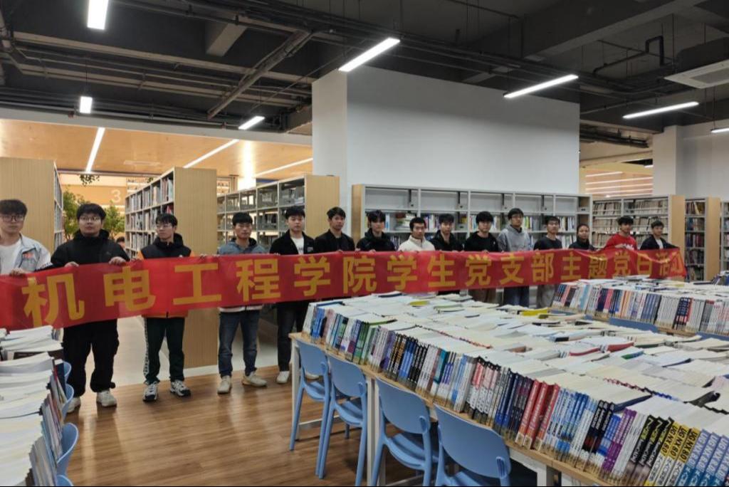 机电工程学院第一学生党支部开展“书香致远,党员先锋行”图书倒架志愿服务