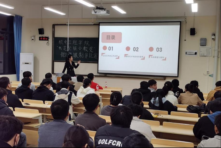 为深入学习贯彻习近平新时代中国特色社会主义思想,创新党员教育形式,1月2日,机电工程学院第一学生党支部在D210教室举办"我是党课小教员"微党课制作比赛。支部书记严继玲、支部学生党员及入党积极分子参与,会议由邓寿任同志主持。