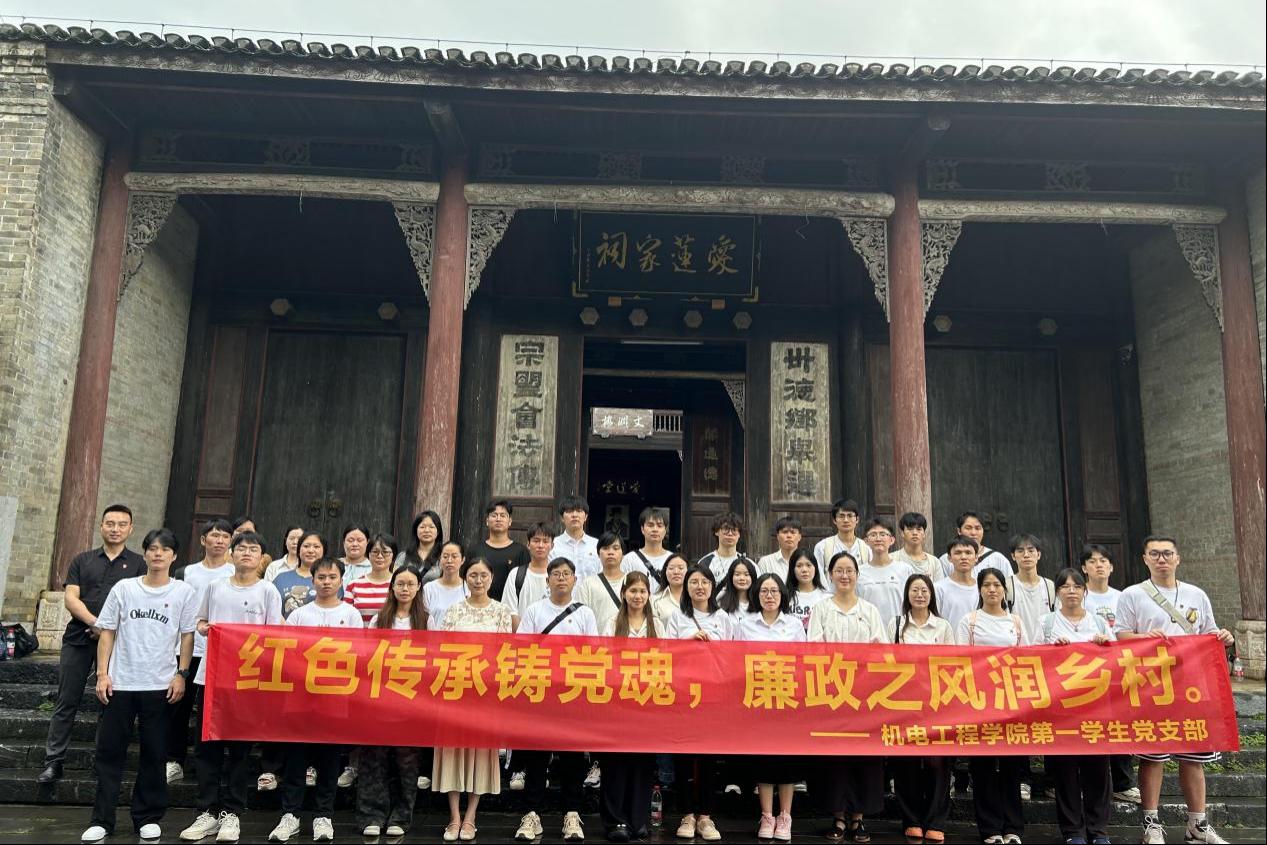 为深入贯彻中央八项规定精神,扎实推进党风廉政建设,6月20日,机电工程学院第一学生党支部组织党员前往桂林市灵川县江头村,开展以“红色传承铸党魂,廉政之风润乡村”为主题的学习教育活动。此次活动通过实地参观与沉浸式体验,引导党员们在感悟红色文化的同时,接受廉政文化的熏陶,进一步增强廉洁自律意识,为学院发展筑牢思想根基。