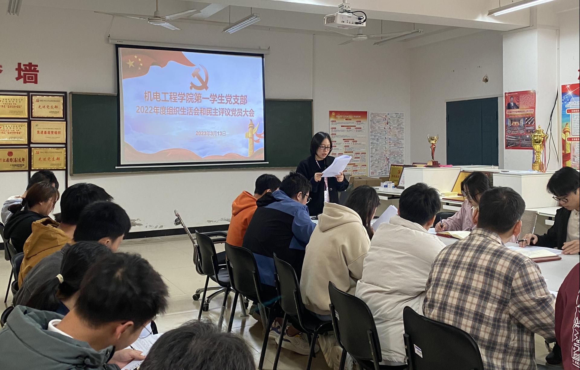 机电工程学院第一学生党支部召开2022年度组织生活会暨民主评议党员大会