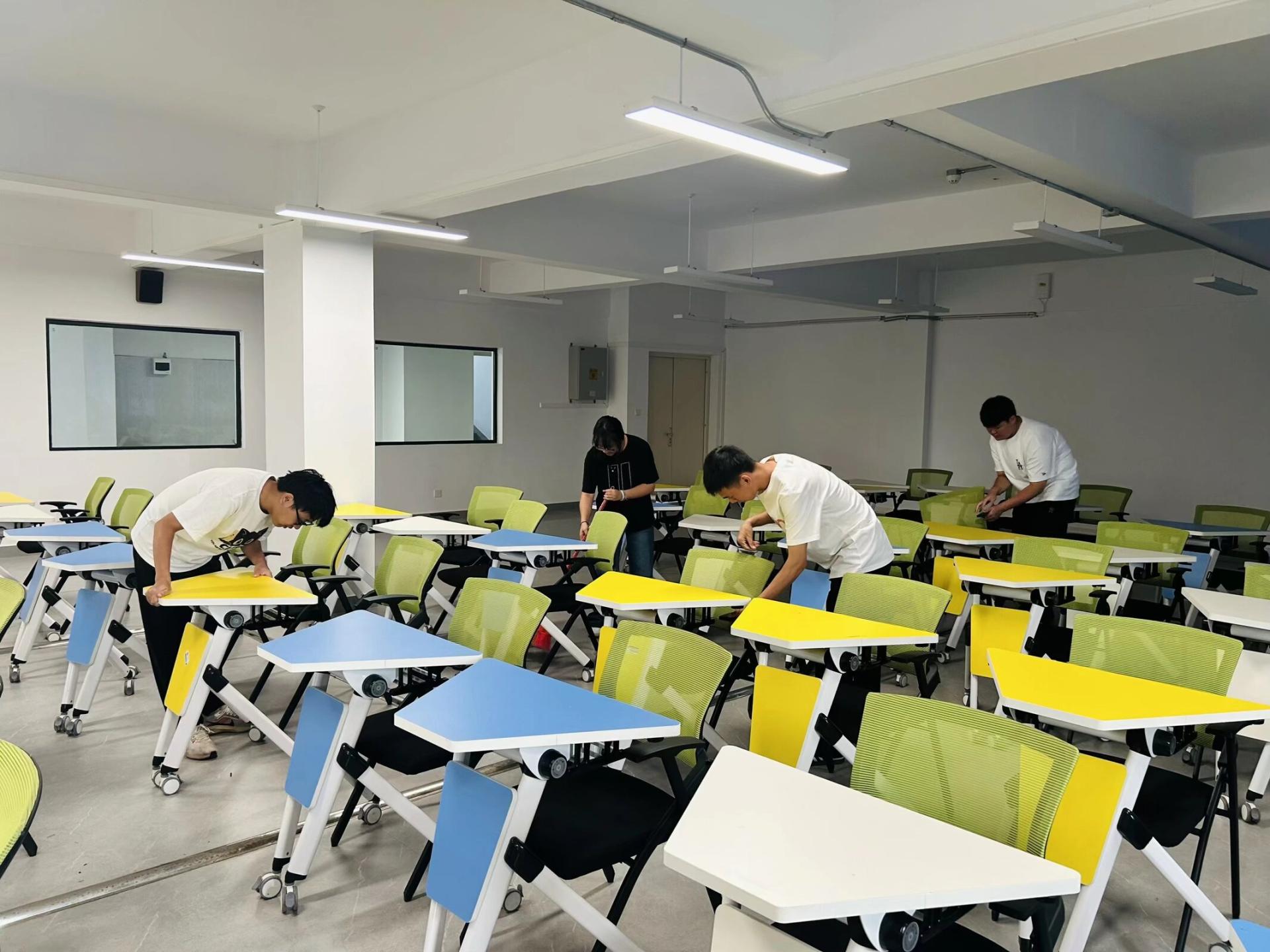 在负责老师的统筹安排下,同学们分工协作,对产教融合中心的教室进行了全面清洁与整理。大家有的认真擦拭黑板,有的仔细摆放桌椅,教室内的物品整齐划一,营造出良好的学习氛围;还有的手持扫帚、拖把,仔细清扫地面、清洁角落,不放过任何一处灰尘与杂物。