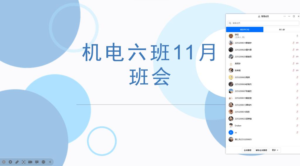 11月30日下午,机电工程学院22532006班班主任游远老师组织全班同学通过腾讯会议开展班会。