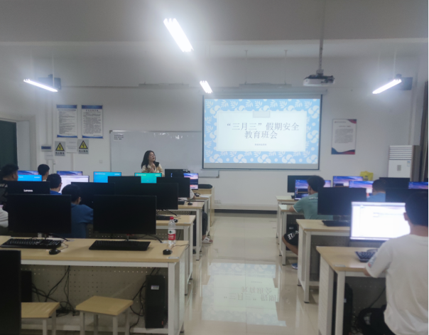 “三月三”放假期间,为了普及假期期间出行安全教育知识,4月20日下午,2022级智能制造四班在52405教室展开关于“三月三”放假安全教育主题班会。
