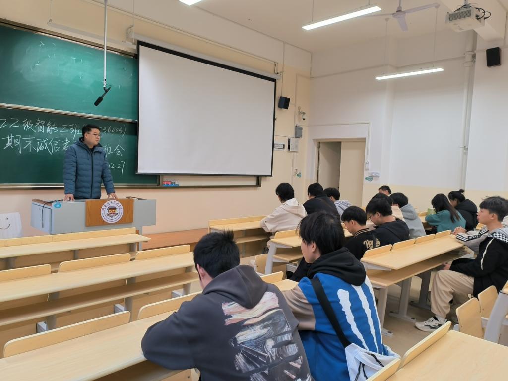 12月27日下午,2022级智能制造工程专业(22536003班)在D105教室召开了期末诚信考试主题班会,本次会议由班主任程彬彬主持,该班全体同学参加。