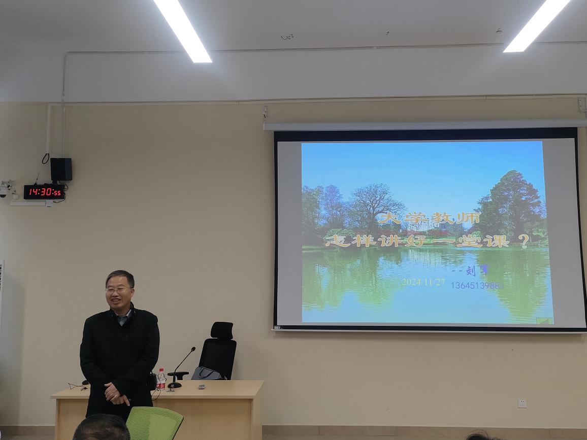 为助力新入职教师尽快适应高校教学工作岗位需要,提升高校新入职教师教学能力和业务水平,更好地履行高校教师岗位职责,11月27日下午,机电工程学院邀请刘军副教授为新入职教师开展讲座,讲座主题为“大学教师怎样上好一堂课”,刘教授从六个方面向新入职教师分享了自己的教学经验与教学方法。