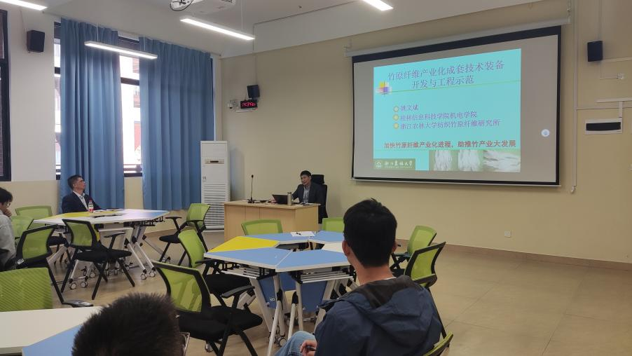 在讲座中,姚文斌教授重点阐述了项目的特点和优势,详细介绍了竹原纤维产业化技术装备的开发过程及其在生产现场的应用场景。他指出,该项目在提高生产效率、降低成本、减少环境污染等方面具有显著优势,为竹原纤维产业的可持续发展提供了有力支撑。姚教授还通过丰富的案例和图片展示了项目取得的成果,相关技术也已在我国多个地区得到推广,对当地经济发展和产业结构调整产生了积极影响。