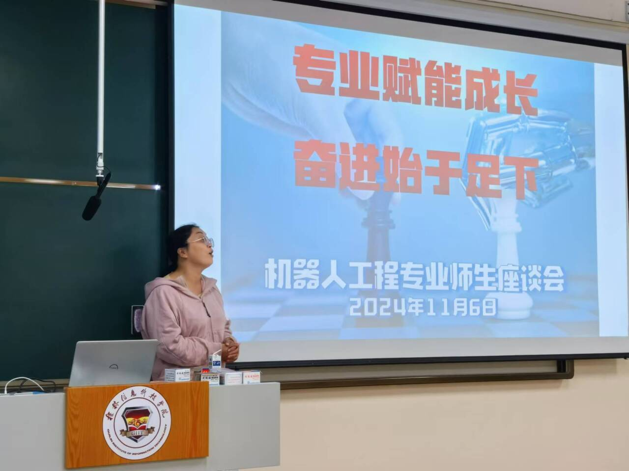 为进一步树立机器人工程专业2024级新生对本专业的正确认识,搭建师生之间沟通交流良好平台,明确学习目标,清晰发展规划,11月6日,2024级机器人工程专业以“专业赋能成长,奋进始于足下”为主题在D210教室举办师生交流会。机器人教研室全体专任教师及2024级机器人工程专业全体学生参会。
