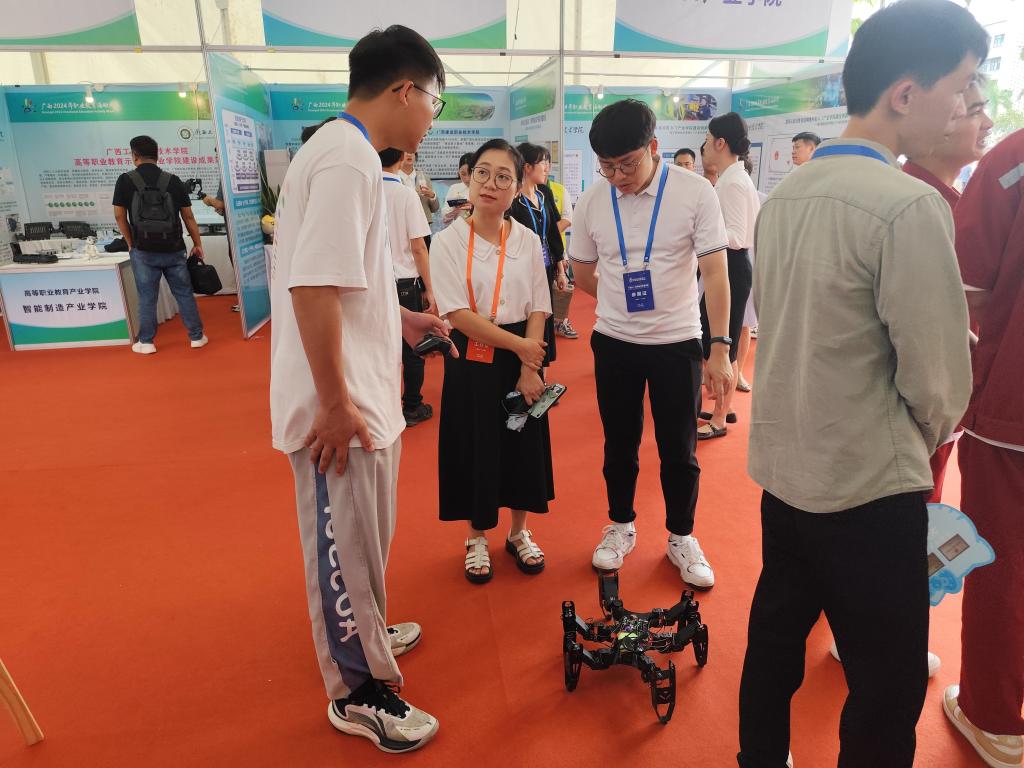 2024年5月20日,广西2024年职业教育活动周在南宁启动。本次展览汇聚了众多国知名职业院校和企业,共同探讨职业教育发展与创新之路。机电工程学院受邀携学生竞赛设计作品---“电力巡检仿生蜘蛛机器人”参展,赢得了在场观众和专家的高度评价。