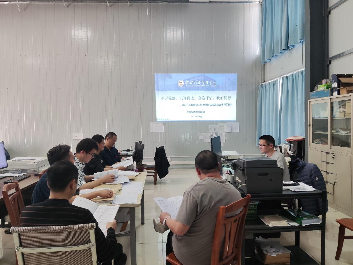 为积极响应本科教学工作合格评估的号召,进一步加深教师对评估指标体系及相关知识的理解,3月24日,实践教学教研室精心筹备并召开了以“本科教学工作合格评估应知应会学习手册”为主题的座谈会。教研室全体教师围绕学习手册展开了深入探讨。