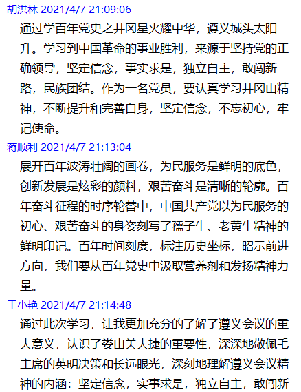 为加深教工党员对中国共产党历史的了解,4月7日,由管理系党总支主办,教工党支部承办的党史学习教育活动微领学活动在线上举行。此活动由教工党支部副书记陈龙同志领学,全体教工党员认真学习《井冈星火耀中华 遵义城头太阳升》的内容。
