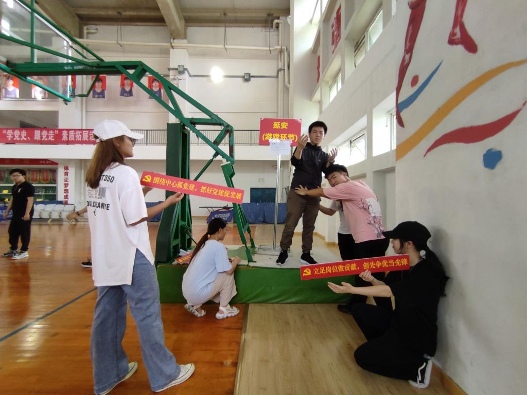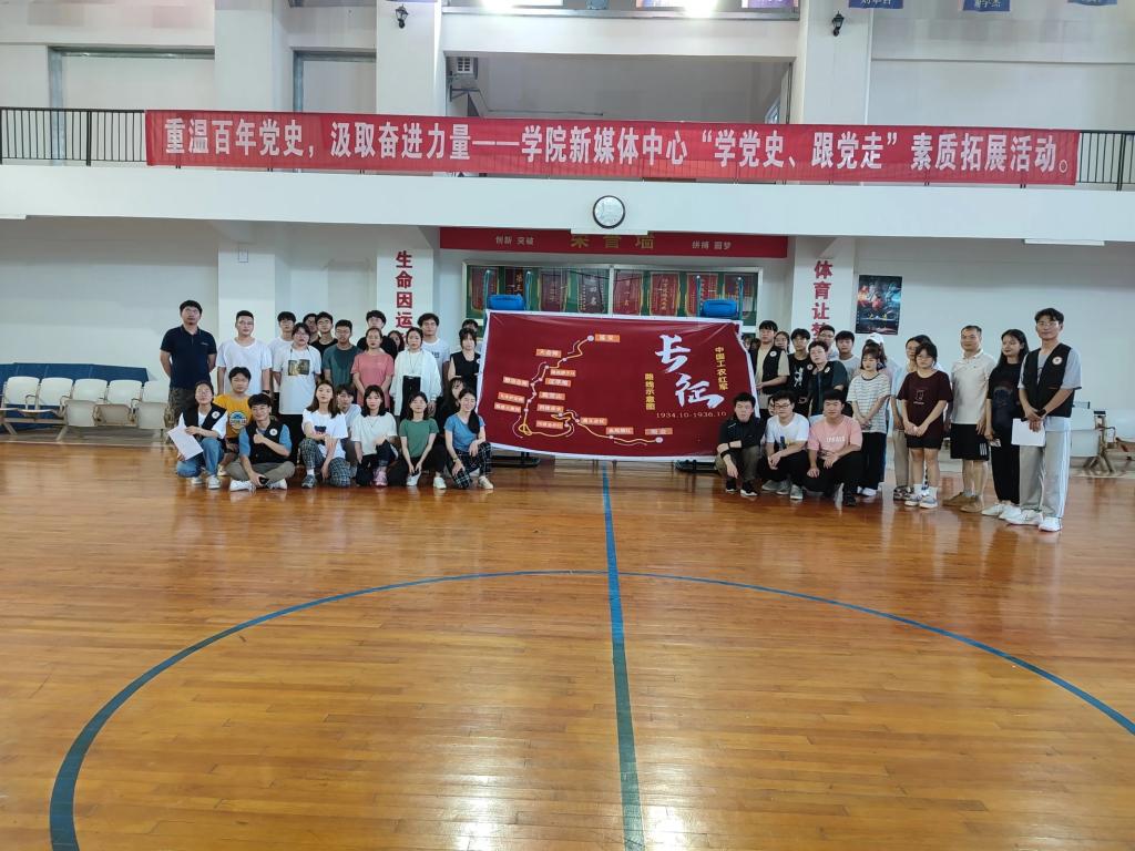 为增强学生干部政治素养和团队意识,推动党史学习教育的落实,迎接建党100周年,5月15日,我院新媒体中心在文体中心举办了以“学党史,跟党走”——“重温百年历史,汲取奋进力量”为主题的素质拓展活动。党群事务部副部长张文源以及50余名同学参加此次活动。