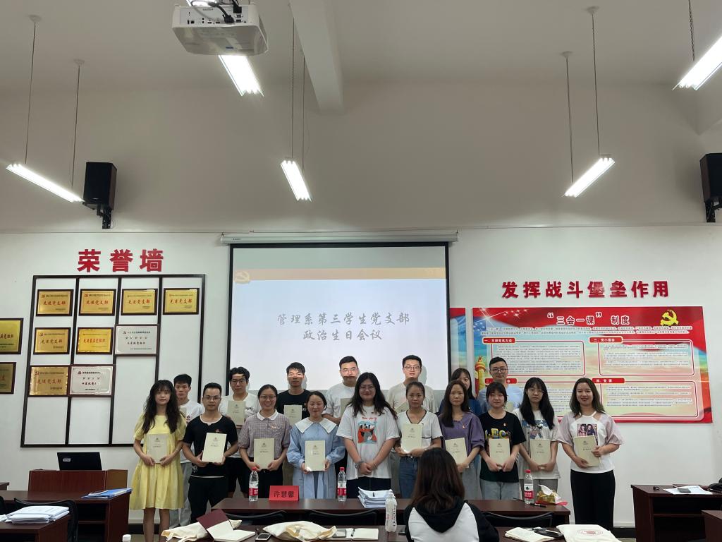 为认真落实党章的学习,强化党员的责任意识,引导学生党员牢记自己的党员身份,6月16日下午,由管理系党总支主办,管理系第三学生党支部承办的共产党宣言主题学习暨政治生日主题党日活动在11501党员活动室开展。