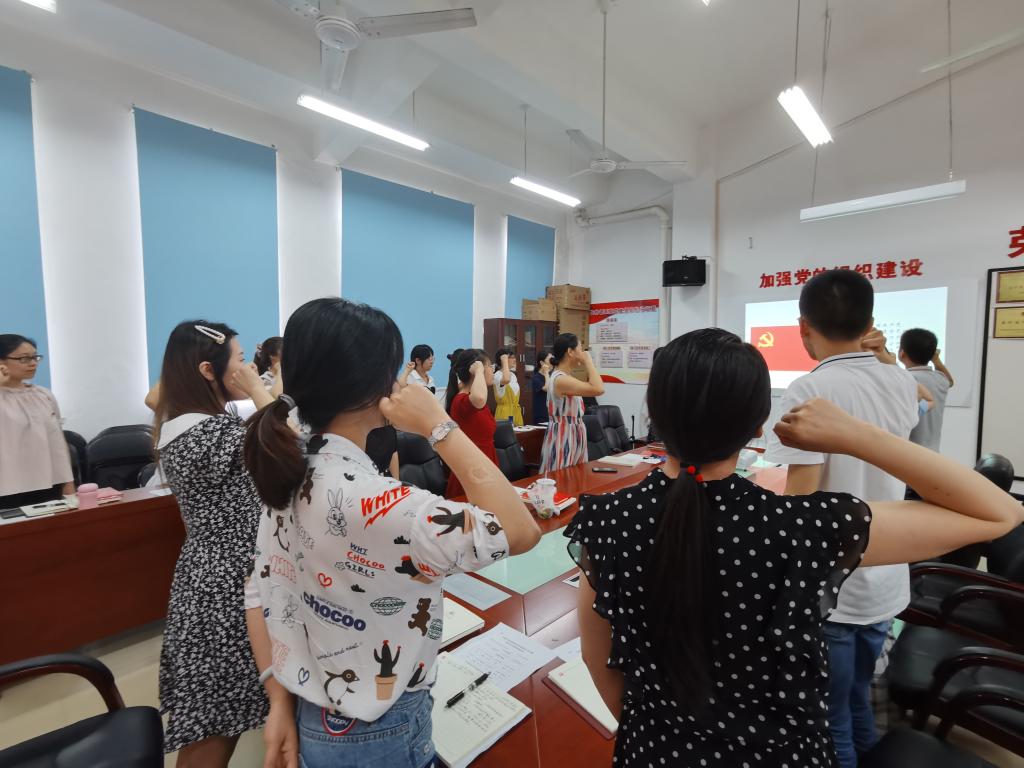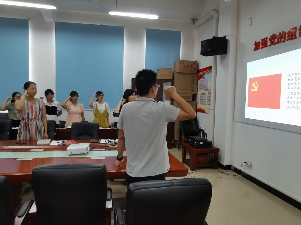 7月8日,外贸与外语学院教工党支部在12501举行重温入党誓词仪式。仪式由外贸与外语系教工党支部书记陆晓老师主持,支部全体教师党员参加。