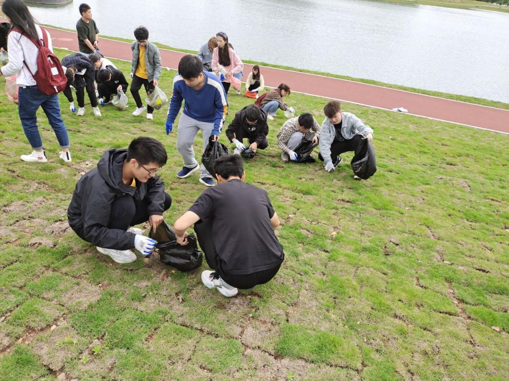 活动开始前同学们统一到草坪处集合,带好手套和垃圾袋,在带队老师的指引下,同学们分为十组,每组设有组长,各自完成负责草坪区域的杂草清除工作。同学们齐心协力、干劲十足,经过整整一个中午的辛勤劳作,南湖旁草坪上的杂草、杂物、残枝败叶都基本清除干净,进一步改善了校园环境。