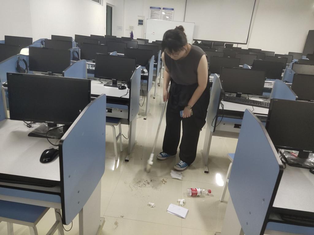 活动开始,受助学子按照实验室数量划分小组,各小组成员对我系实验室进行责任区划分。在服务过程中,受助学生党员带领受助团员投入清扫服务中去,党团合力,团结协作、干劲十足,不怕脏,不怕累,将我系30间实验室进行了彻底清扫。