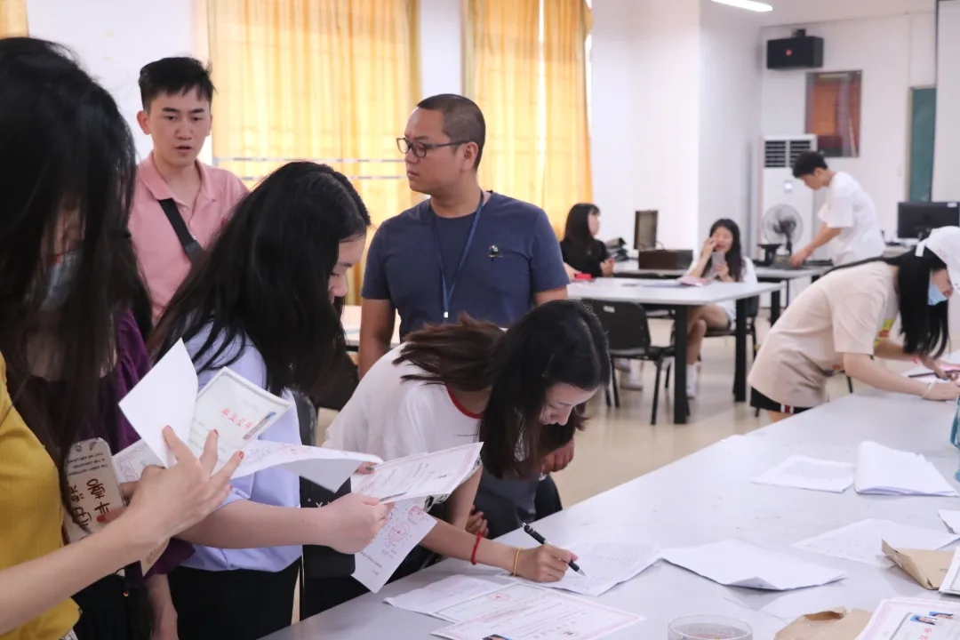 毕业证发放现场按照相关流程有条不紊的进行,设计系黄云鹏书记到现场查看毕业证发放工作,提醒毕业生们仔细核对信息,防止因为疏忽和遗漏出现问题,对党员先锋队的工作提出了要求,要求大家一定要严谨细心,守好自己的岗位,做好自己的工作,要做到高效无误。