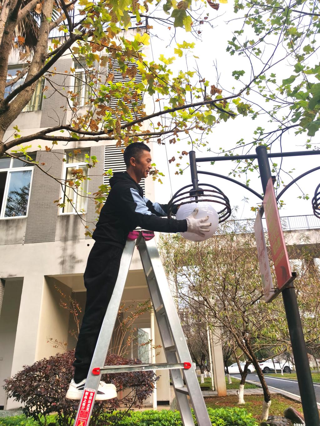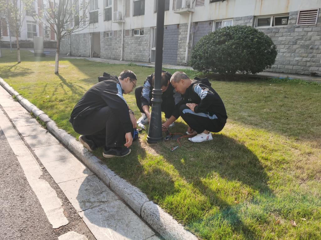 因近期雨天较多,造成校园部分路灯光源衰减、损坏,照明效果大打折扣,给师生夜间出行造成了一定的影响,为保障师生安全,近日,维修服务中心组织全体维修工对校内路灯进行全面的排查、检修。