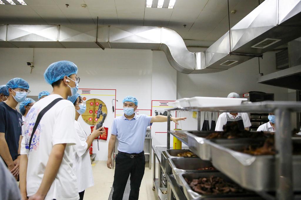 来自不同学院的30余名师生代表一同参观食堂后厨