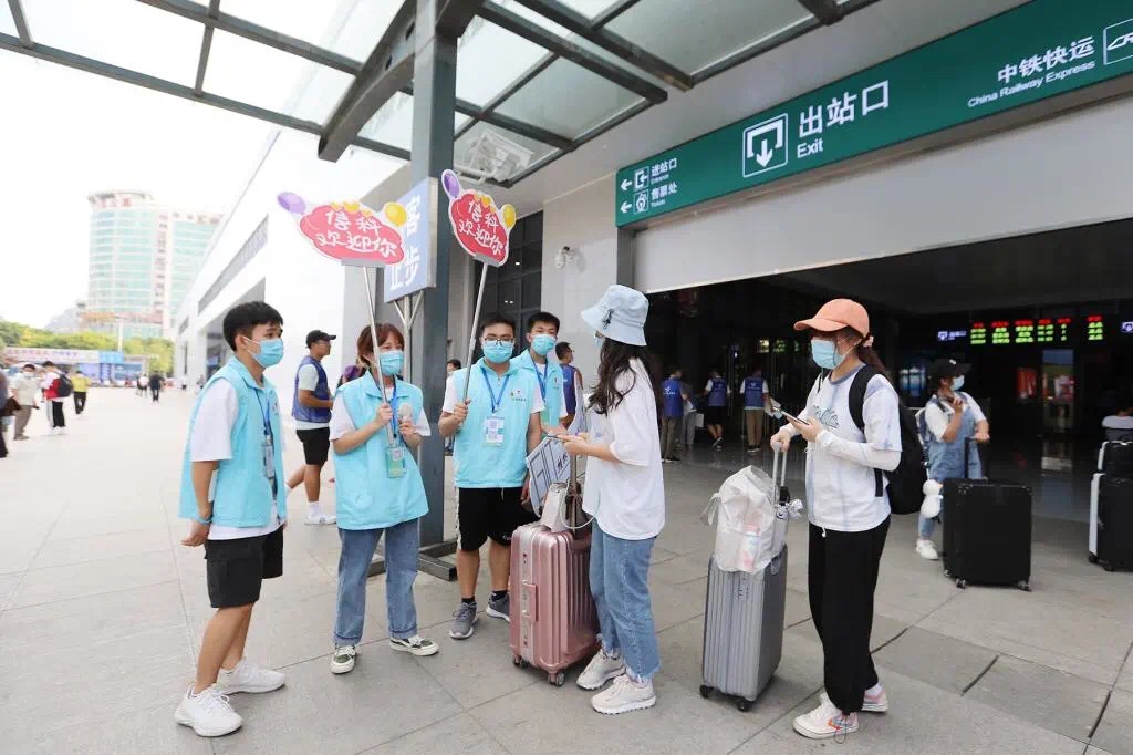 为扎实做好新学期开学迎新工作,确保迎新期间安全有序,全校各级学生组织共招募2500名志愿者投入到信息查验、行李搬运、交通接驳、路线指引、身份核验、报到注册等服务项目中,用他们的微笑和汗水点亮了2021级新生入学之路,为来自全国各地的4000余名新同学及家长递上了一张亮丽的“信科蓝”名片。