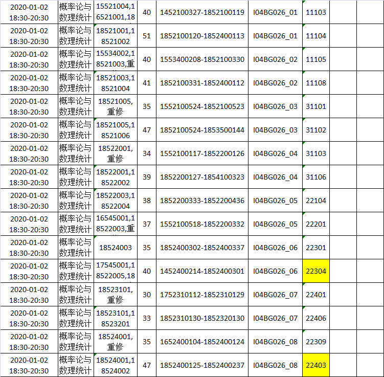《概率论与数理统计》考试因个别教室冲突,原考试安排为: