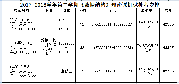 新增2017-2018学年第二学期补考安排如下: