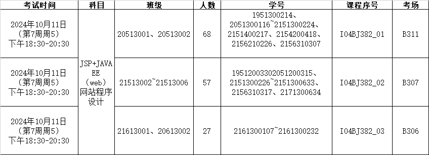 2024-2025学年第一学期《JSP+JAVA EE(web)网站程序设计》考试安排