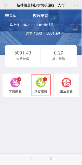 第二步:登录后,根据需要缴费的项目,点击进入“其他费用”,根据提示步骤进行缴费。