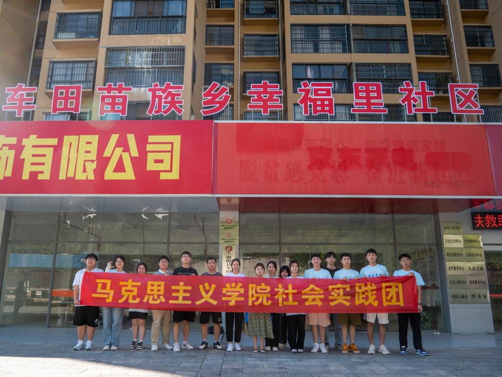 车田苗族乡幸福里社区的居民主要是易地扶贫搬迁的村民,本次实践活动主要围绕“参观学习”、“理论宣讲”、“关爱留守儿童”三大主题来展开。活动中,师生参观了幸福里社区新时代文明实践站、文体活动中心、就业社保服务中心、儿童之家等地方,了解了搬迁群众在住房、交通、就业、生活环境等方面发生的巨大变化。通过搬迁“村民”成“居民”,不只“搬个家”,更重要的是归属感、认同感、幸福感也不断提升。