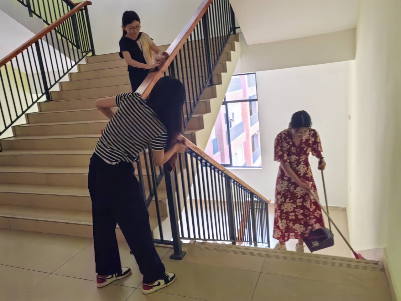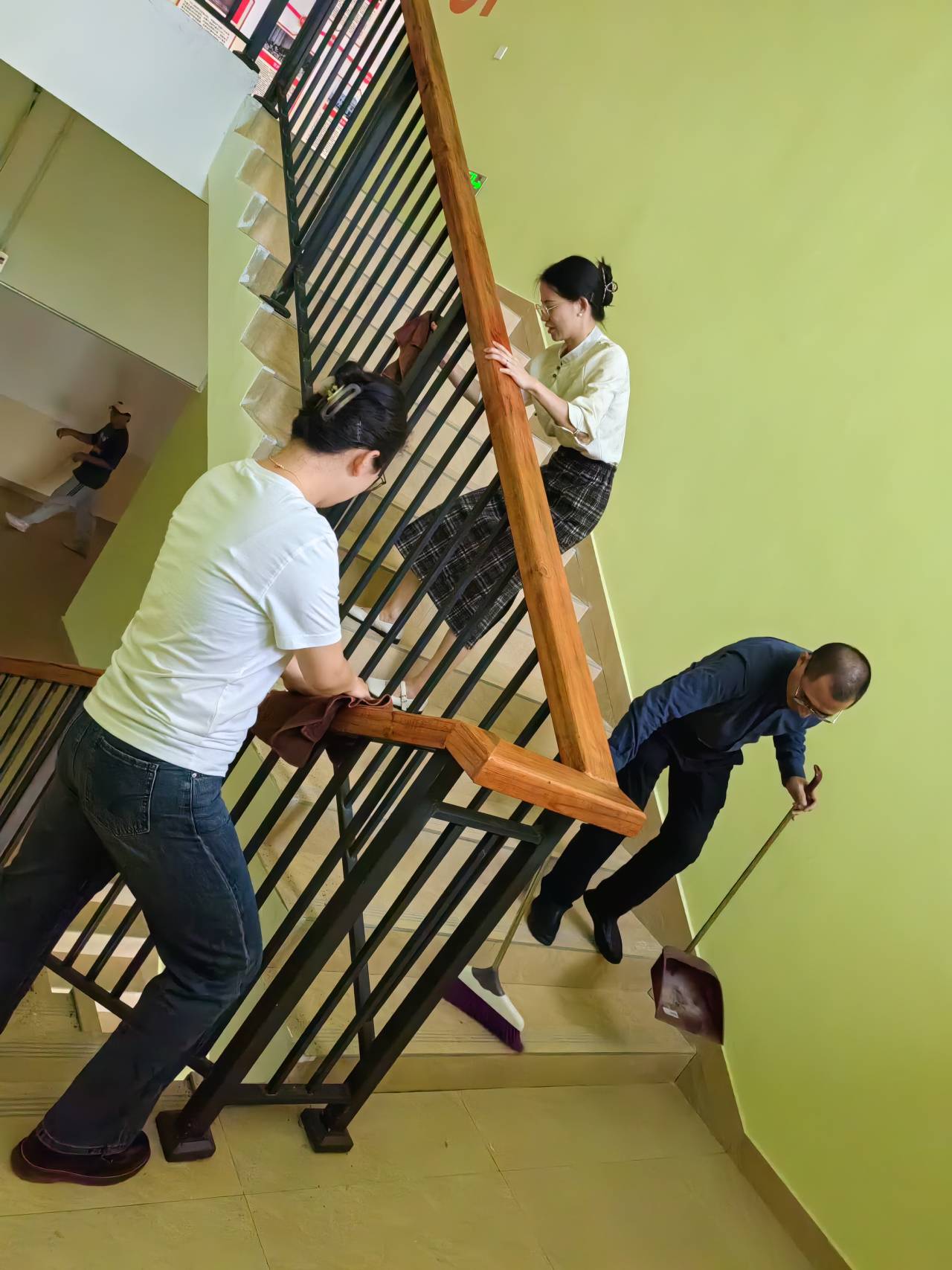 全体教师分工合作,密切配合,积极主动地参与到此次活动中来,齐心协力完成了办公室附近的两个楼道的清扫工作。在大家的努力下,办公楼卫生环境得到了进一步改善,整体面貌焕然一新。