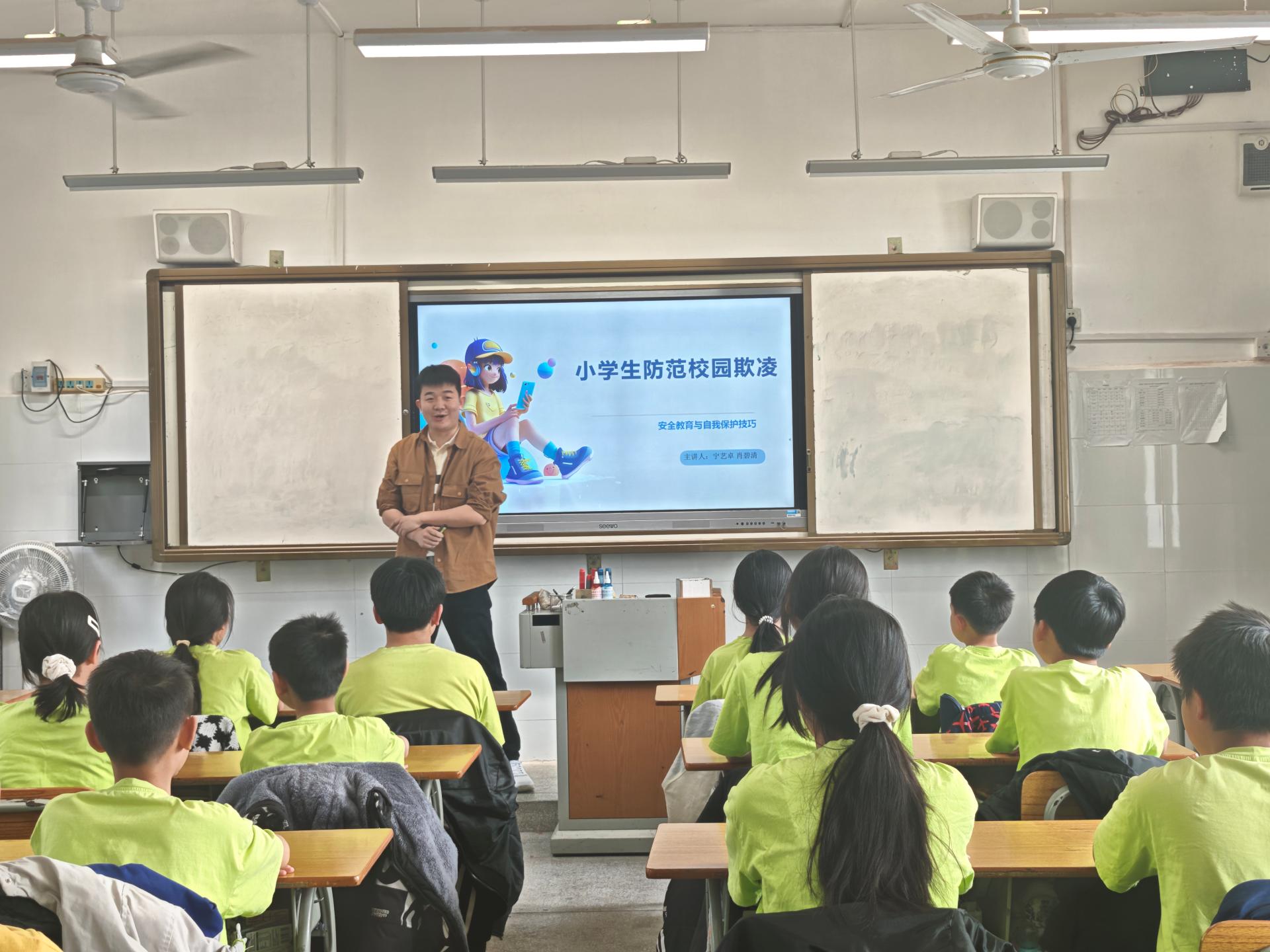活动中,党员志愿者宁艺卓、肖碧清结合小学生的认知特点,通过生动有趣的案例、形象直观的动画以及互动问答等形式,深入浅出地向同学们讲解了校园欺凌的现状、什么是校园欺凌、校园欺凌的危害以及怎么面对校园欺凌。同时,宁艺卓详细介绍了与校园欺凌相关的法律法规,教导同学们如何运用法律武器保护自己的合法权益。
