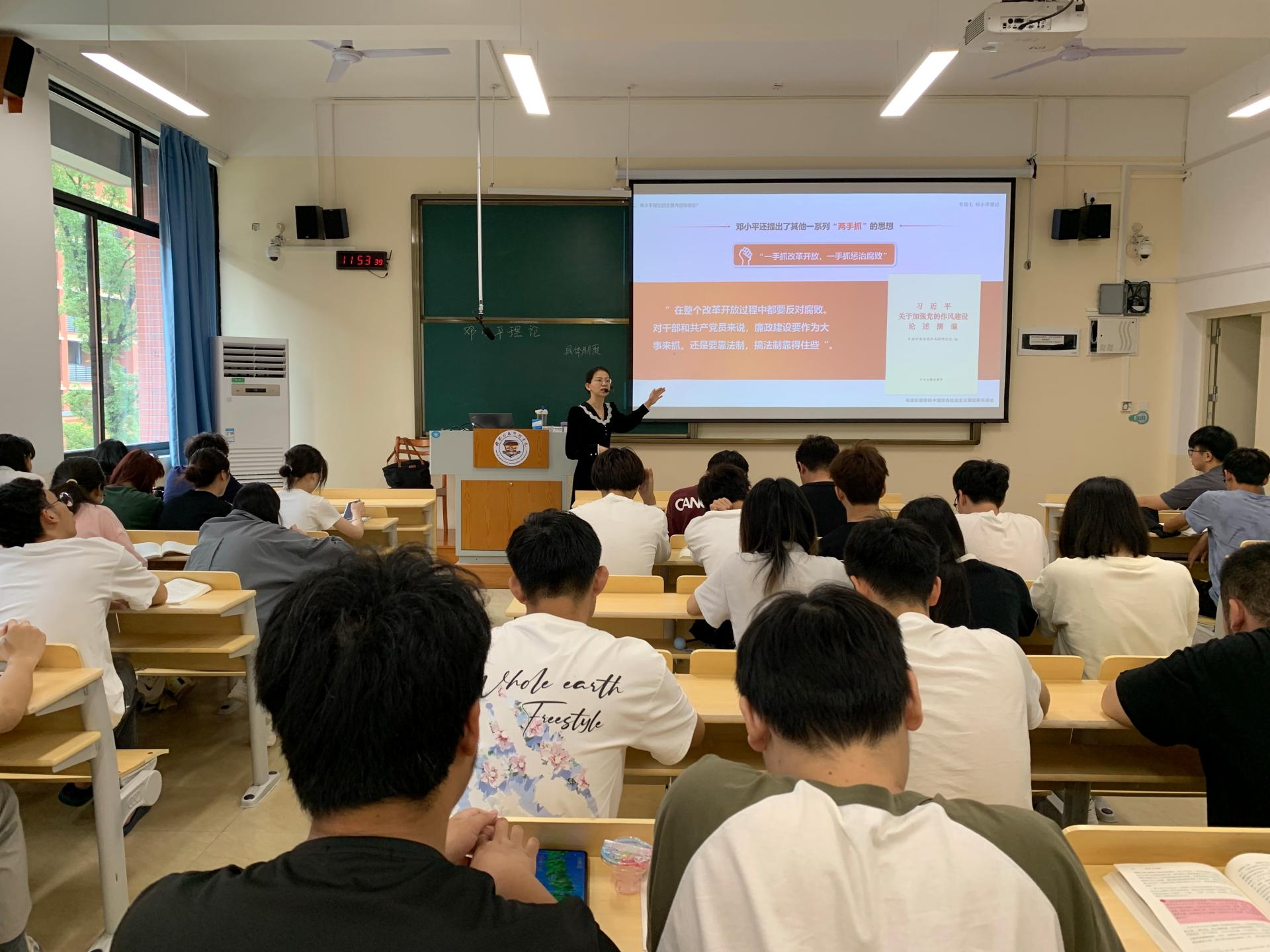 课上,党支部书记何亚慧老师依托《毛泽东思想和中国特色社会主义理论体系概论》课程,深入解读了邓小平理论中“两手抓两手都要硬”的重要思想,着重分析了“一手抓改革开放,一手抓惩治腐败”的内容。这一理论深刻阐述了在经济发展的同时,必须坚定不移地打击腐败现象,为改革开放营造风清气正的环境,让师生们认识到廉政建设对于国家发展的重要性与必要性。剌啸媛老师则结合习近平总书记关于作风建设的重要论述,强调了党性、党风、党纪的有机统一。通过对中央八项规定及其实施细则精神的解读,以及对“四风”问题的剖析,师生们清晰认识到作风建设永远在路上,必须时刻保持警惕,杜绝不良作风的滋生。