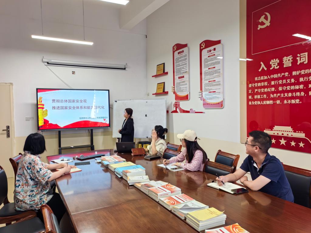 4月19日中午,马克思主义学院教工党支部开展总体国家安全观专题学习,会议由院支部副书记剌啸媛主持,纪律委员石珂老师主讲。活动学习了习近平关于总体国家安全观重要论述、《中华人民共和国国家安全法》《总体国家安全观学习纲要》等文件精神。