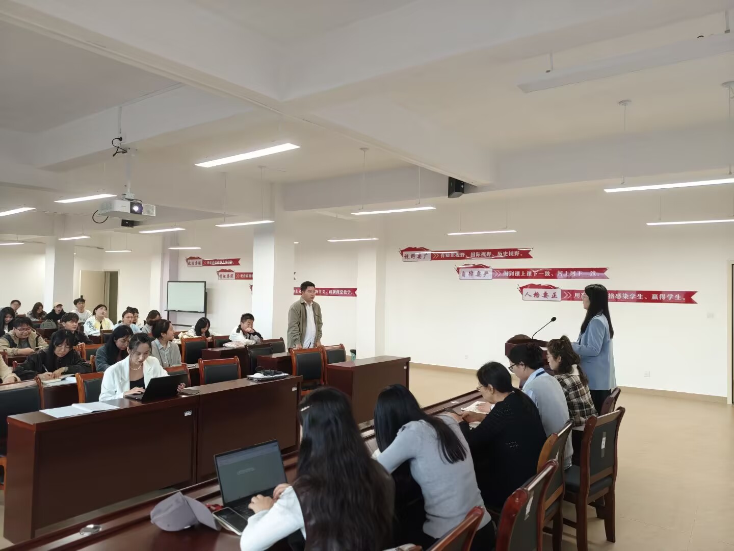 活动在马克思主义基本原理和毛泽东思想和中国特色社会主义理论体系概论两个教研室同步开展。党员教师立足课程内容,针对学生在理论学习中的疑点难点,通过一对一解答、案例剖析等方式,帮助学生化解思想困惑、深化理论认知。活动现场互动热烈,学生普遍反映,教师的辅导使抽象理论变得鲜活易懂,不仅解决了学习障碍,更增强了思政课的吸引力和认同感。部分学生还就“理论如何联系实践”、“个人发展如何服务国家需求”等话题与教师深入交流,进一步拓展了学习视野。