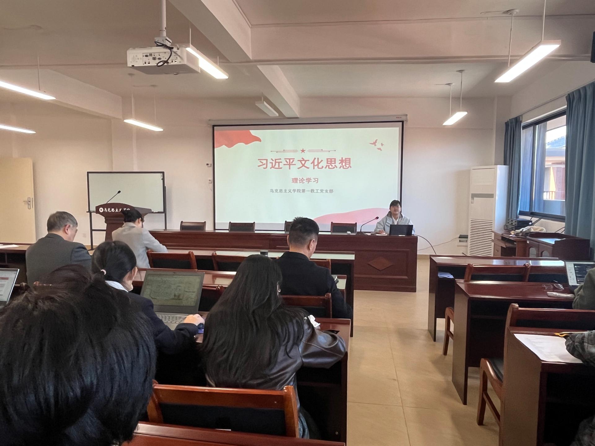 11月28日上午,马克思主义学院教工第一党支部在G612会议室召开习近平文化思想专题学习会。会议由支部宣传委员韦何洁老师作专题领学,全体党员教师参加。